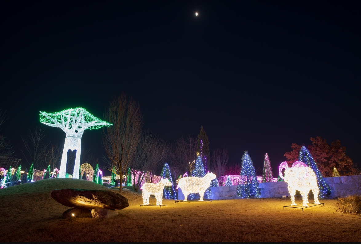 약 2만평 규모의 부지에는 정원마다 다른 주제로 사계절의 대표 별자리를 비롯한 다양한 별빛이 세상에 내려앉은 모습을 볼 수 있습니다. 퍼스트가든 빛축제는 사계절을 담아낸 다양한 별자리 정원 뿐 아니라 생명과 희망을 담은 바오밥나무 별빛등 각 정원마다의 스토리를 담아낸 별빛테마정원입니다.