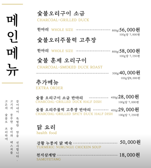 숯불오리구이, 소금: 56,000원 - 한마리, 800g