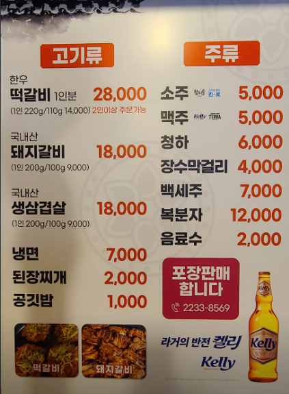 | 떡갈비 (1인분) | 28,000원 |
