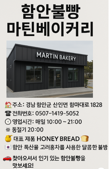 여행 중 또는 주말 나들이 중에 흔하지 않은 지역 특산 베이커리를 찾고 계신가요? 평범한 빵이 아닌, 그 지역의 이야기와 재료가 담긴 특별한 디저트를 맛보고 싶은 분들께 함안의 자랑, 마틴베이커리의 불빵을 소개합니다!🔥