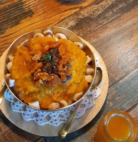 마틴베이커리의 불빵은 단순한 빵이 아닙니다. 함안의 특산물인 함마홍차를 이용해 만든 홍차 크림과 불에 구운 듯한 겉면의 식감이 어우러져 마치 작품 같은 디저트예요. 🎨